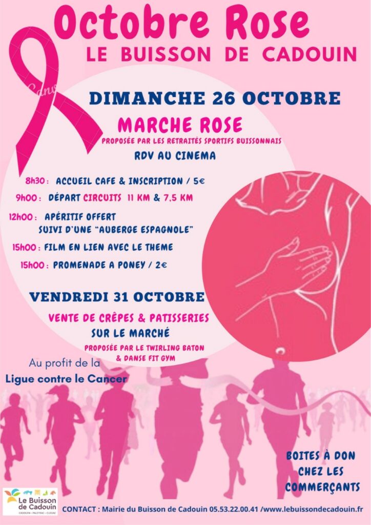 Le territoire du Buisson accueille, cette année encore, des actions au profit de la Ligue contre le Cancer dans le cadre d’OCTOBRE ROSE.